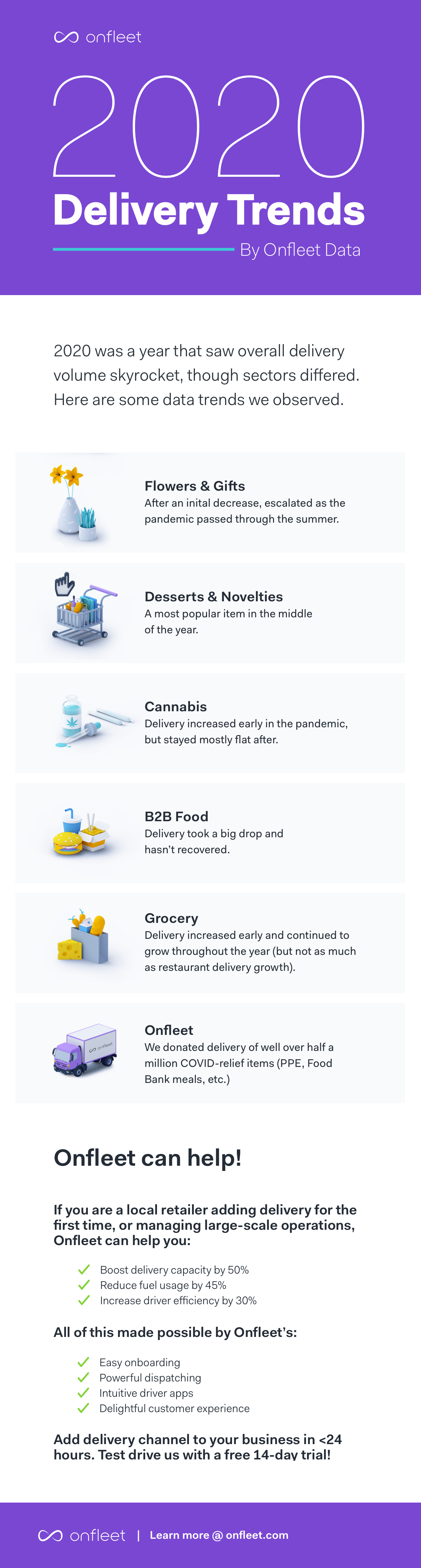 label Industry Onfleet shares some trends behind our delivery data in 2020 1 min read Onfleet, Inc. December 17, 2020 Tags: Industry