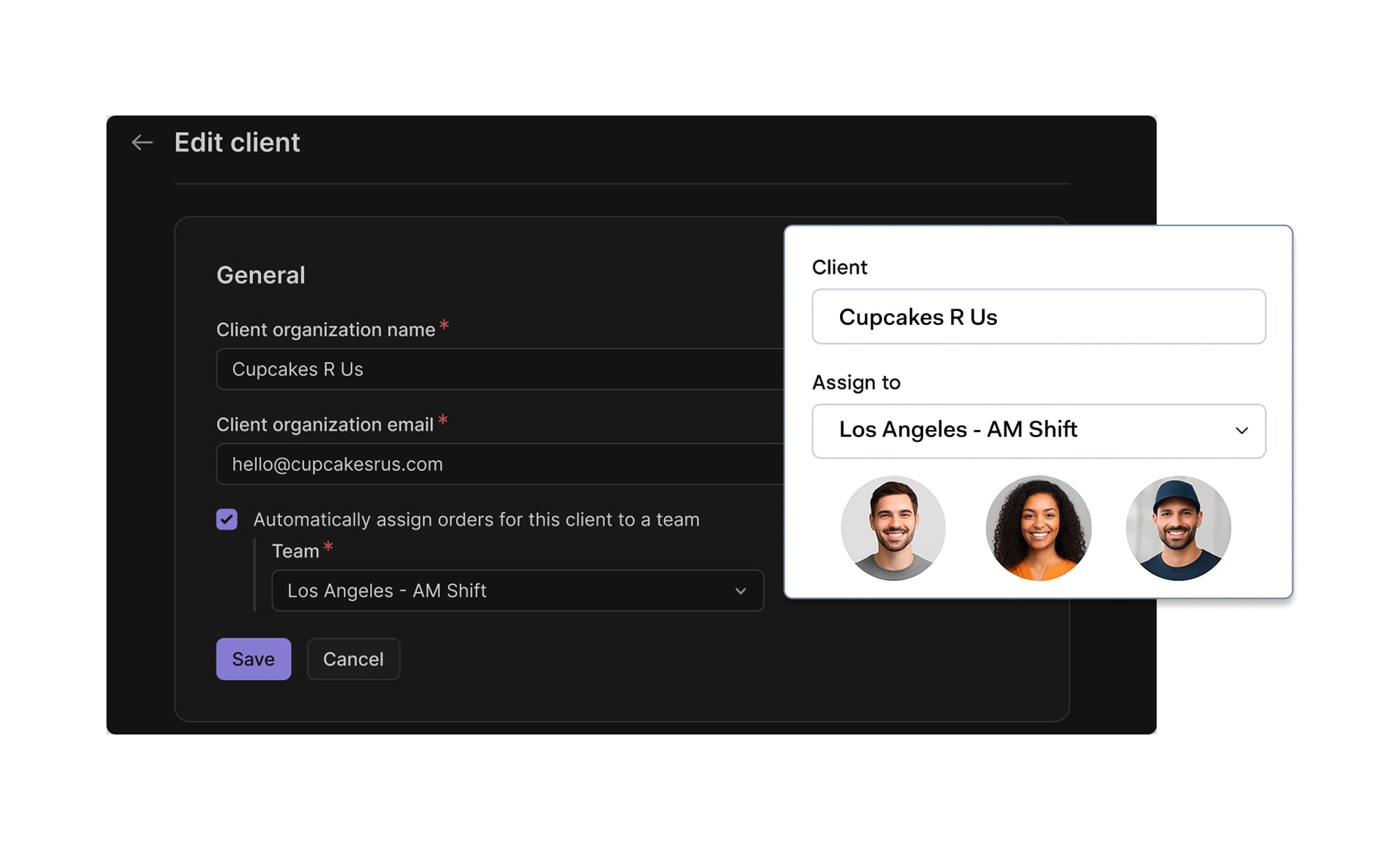 Automatically assign client orders to a designated driver team, saving valuable dispatch time and simplifying operations for couriers with multiple driver teams.