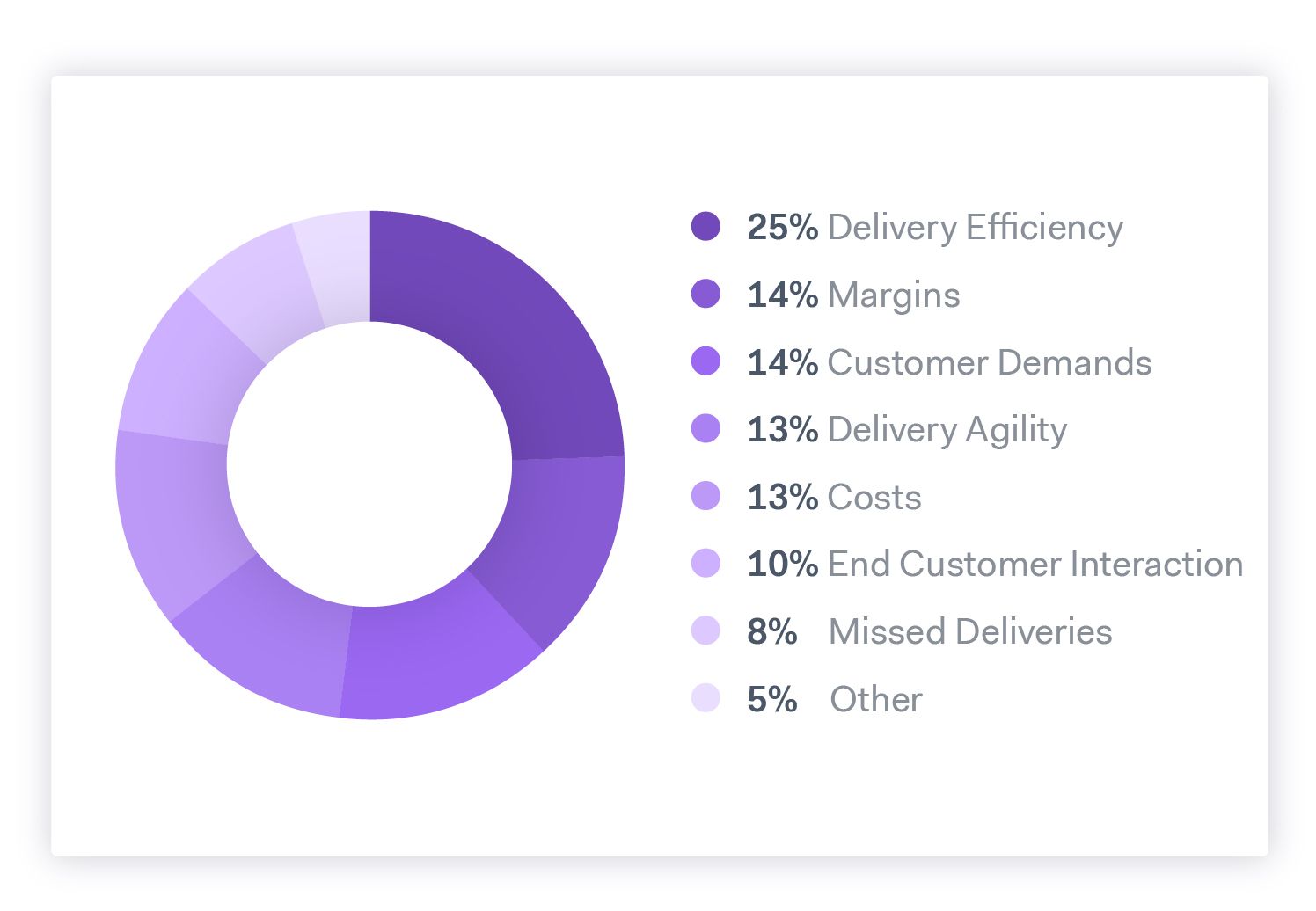 This increased volume of last mile deliveries has made it difficult to maintain efficiencies and manage costs. Today, 25% of companies list “delivery efficiency” as their biggest last-mile challenge: