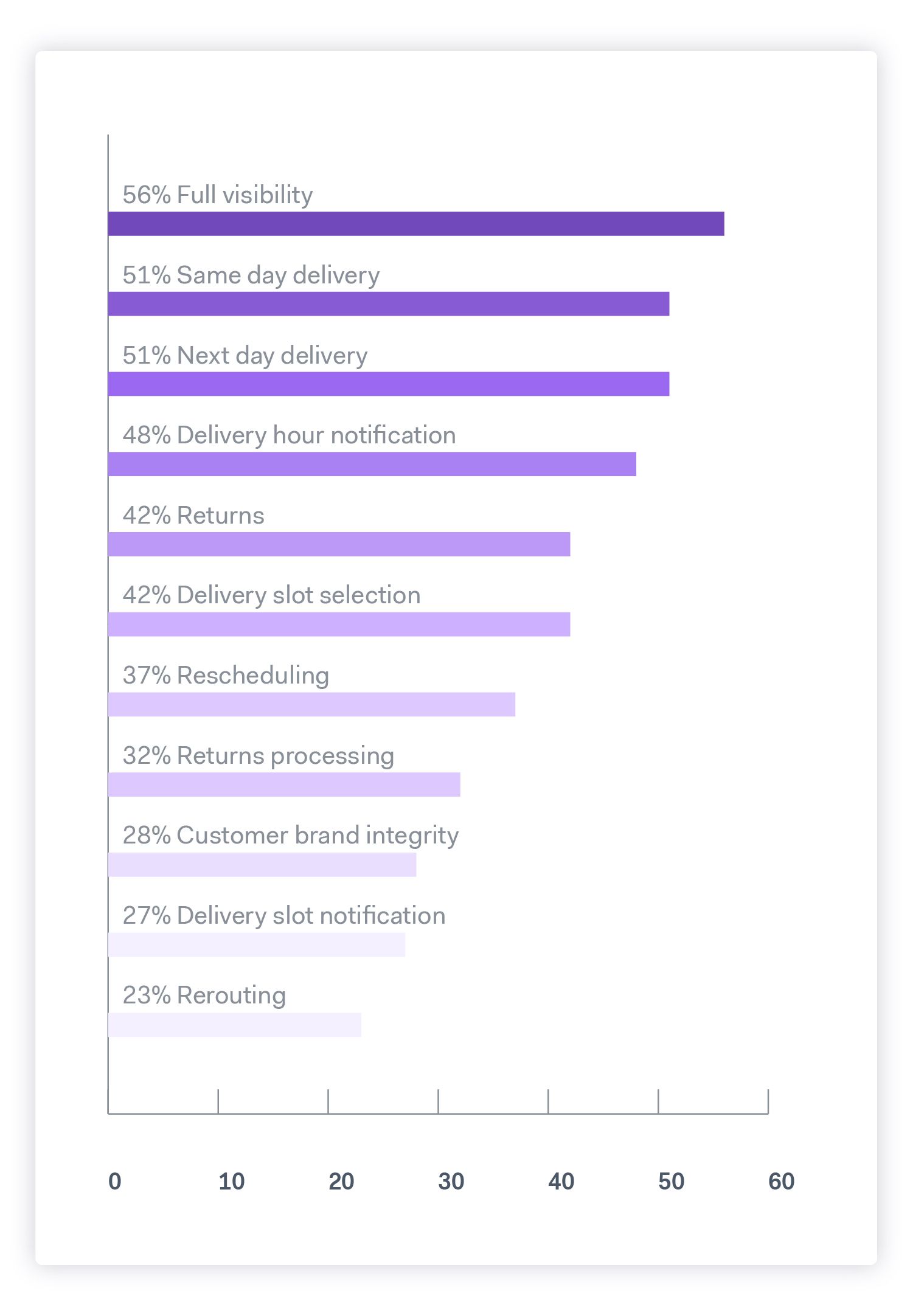 Same-day delivery isn’t always the best option for people, depending on their circumstances. In fact, 73% of consumers said that a convenient time slot for delivery is more important than fast delivery.