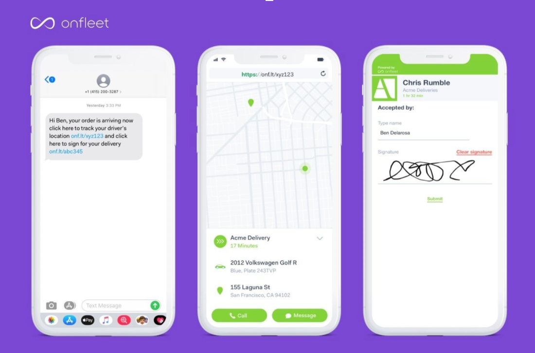 In response to COVID-19, Onfleet released a new proof of delivery feature for Contactless Signatures. This feature allows businesses using Onfleet to request signatures for delivery via SMS, enabling recipients to sign for even the most sensitive packages - legal and medical documents - without ever having to come in contact with delivery drivers.