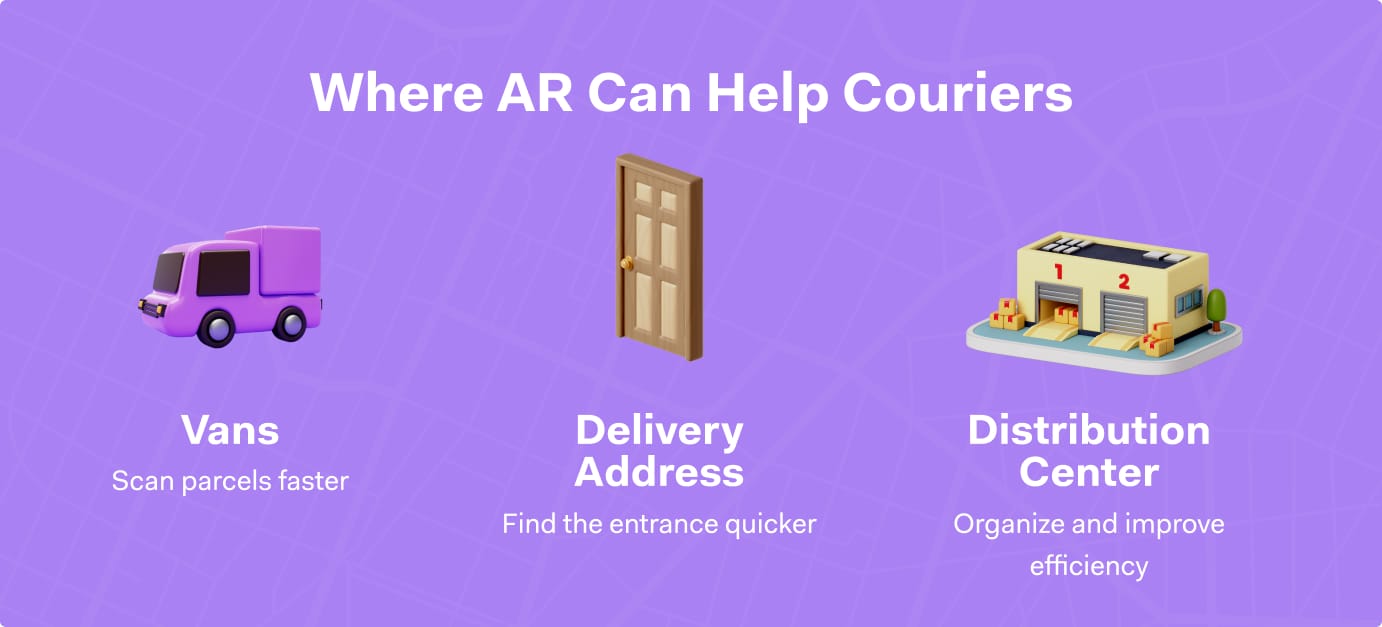 Using Augmented Reality, you innovate your courier delivery business and stand out from the crowd. By using AR, you can increase your efficiency, speed, and organization, and also improve customer satisfaction.