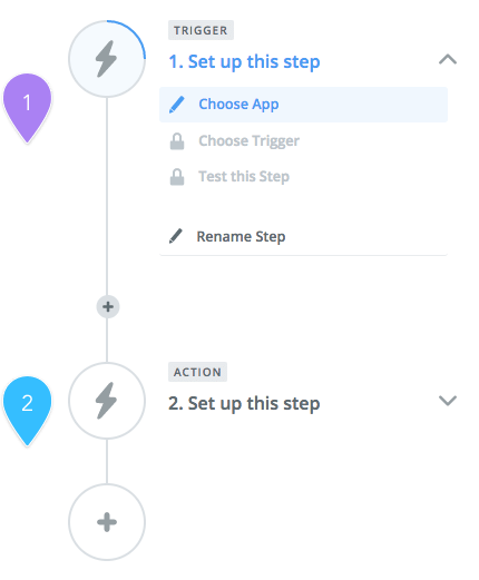 A basic integration created in Zapier is called a Zap and at its simplest form a Zap has two parts: (1) a trigger and (2) an action.