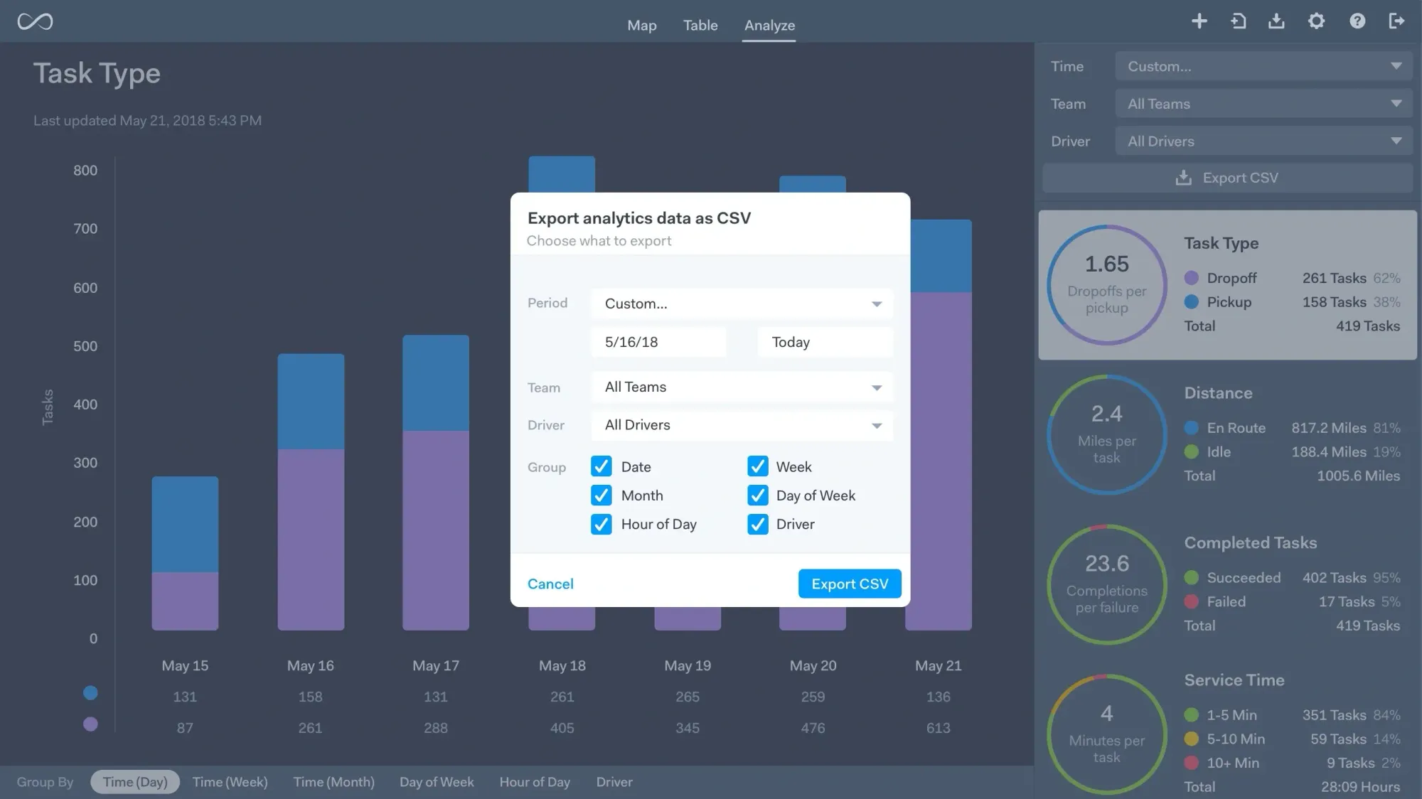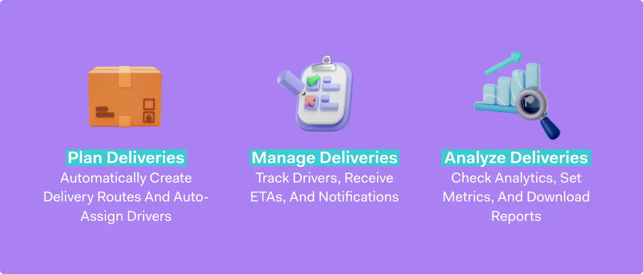 These features will take your business to the next level by planning, managing, and analyzing your deliveries.