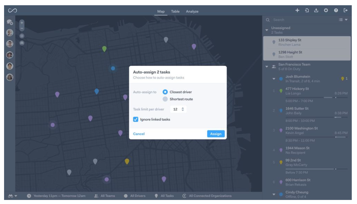 If you’re using Onfleet, the platform’s dispatch management feature automatically adjusts routes based on real-time traffic or weather conditions. Onfleet then notifies couriers about route changes, and the new route appears in their navigation. Managers can also set rules to automatically assign deliveries based on proximity and route distance.