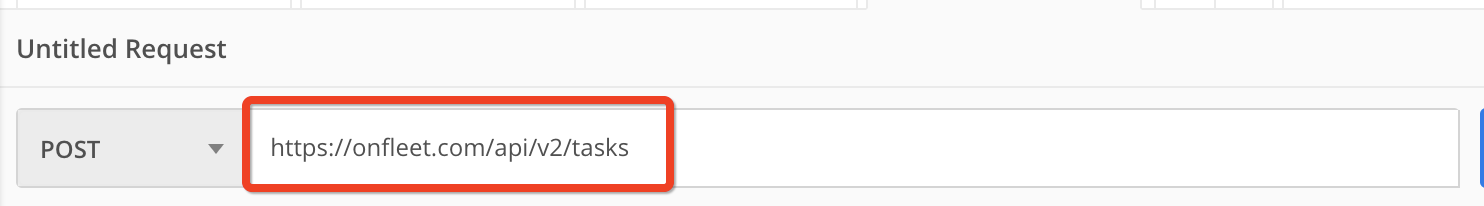 3) Once you have selected POST, you can then enter the request URL in the Request URL section. The URL we want to use here is https://onfleet.com/api/v2/tasks. This is what we call the tasks API endpoint, which is the target endpoint where we are creating the task on: