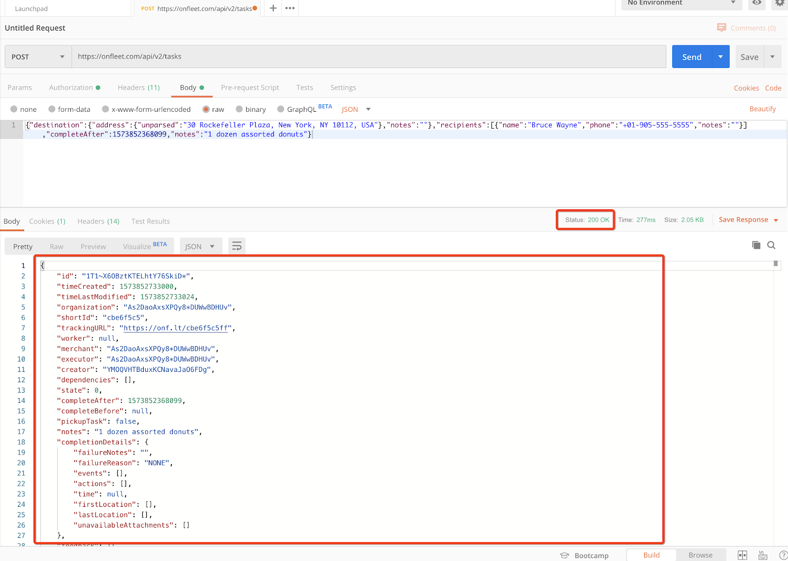 Of course with more experience, more parameters can be added to your body as you create your tasks, such as setting up proof-of-delivery, creating tasks in batches, setting up auto-assignment and many more. The possibilities are virtually endless.