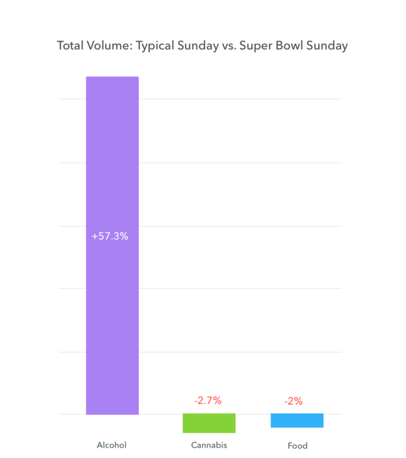 There was a huge spike — 7X the amount usually ordered on your typical Sunday — in alcohol deliveries at 12:30 pm PST, right around the time people were gathering for the big event.