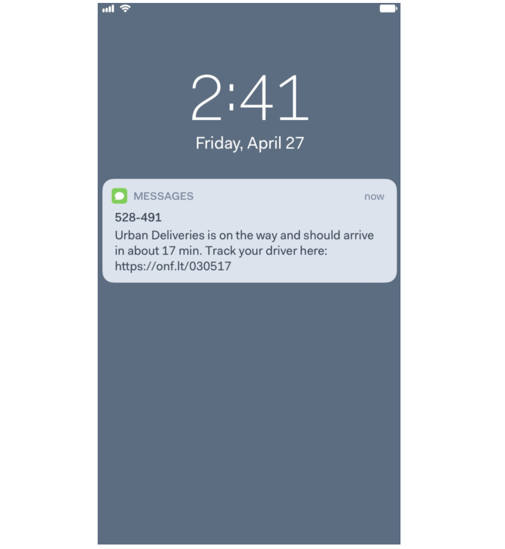 A last mile logistics tool like Onfleet fills this need by letting your customers know when a delivery has started, when it should be expected, and when it’s arriving with automatic SMS notifications.