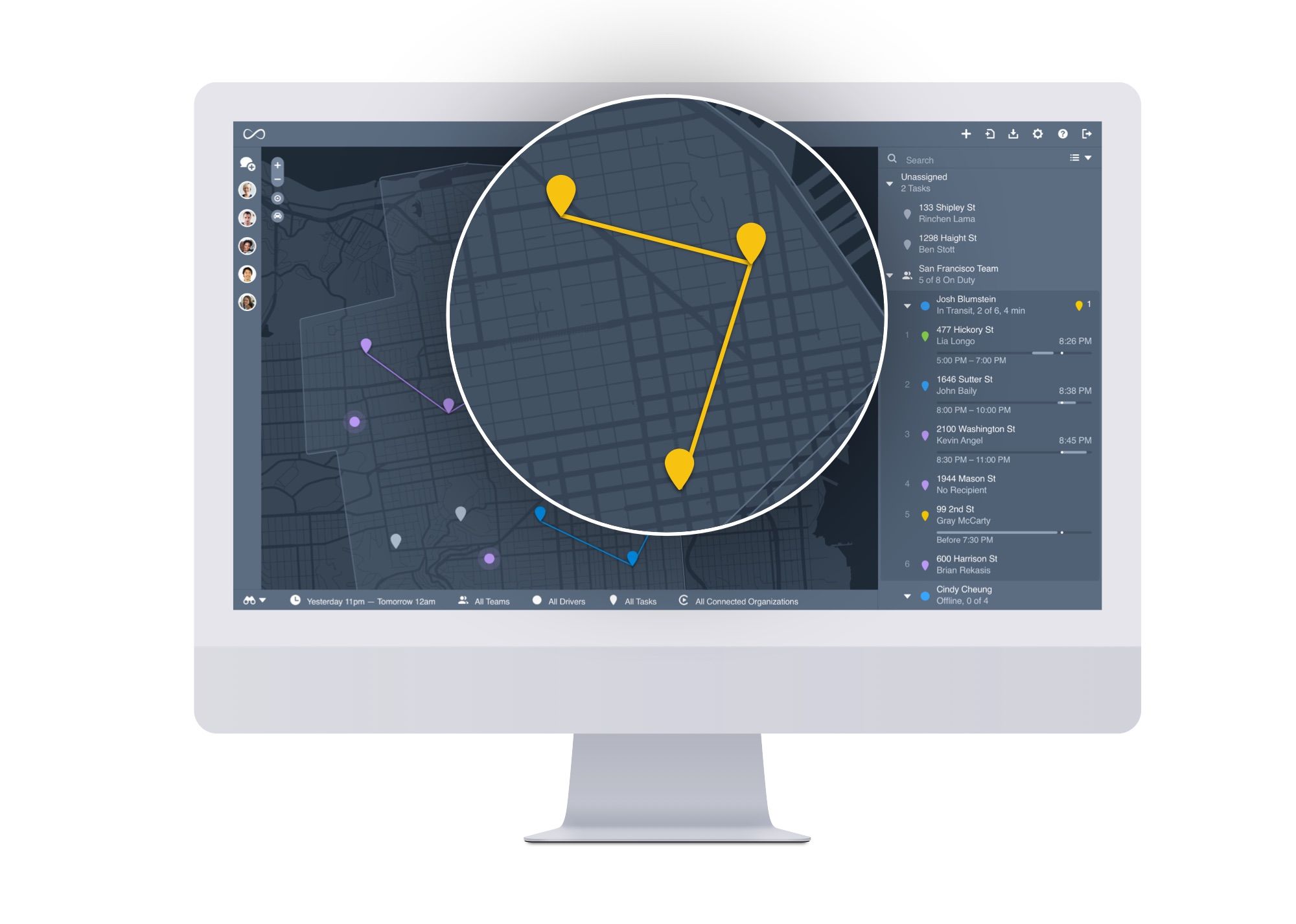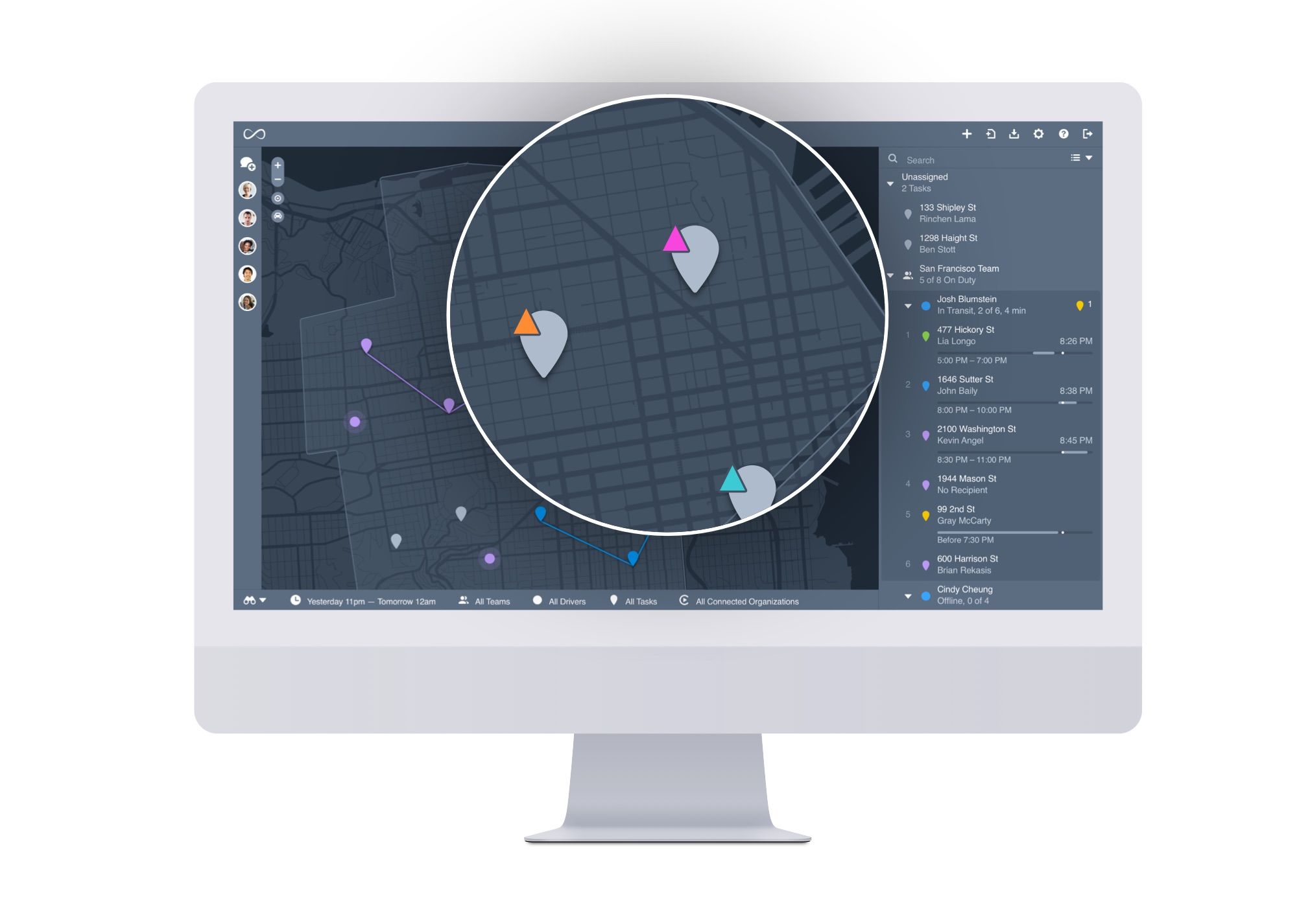 Dashboard map pins can now be modified with colorful triangles to denote special task characteristics or levels of urgency. See our API docs for more information.