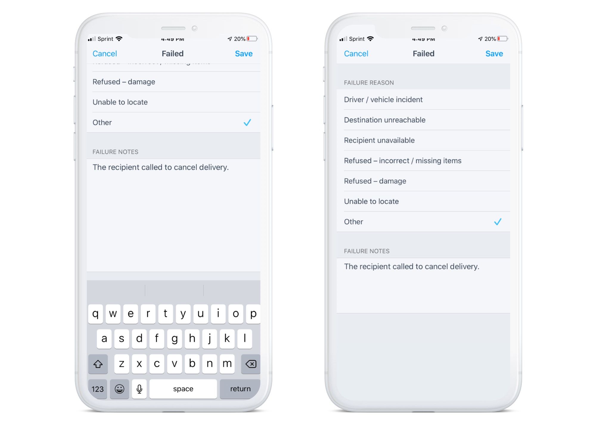 Onfleet resolved a bug that caused Task Failure notes to be stored as Task Completion notes. Task Failure notes now appear in the correct field (for exports and API.) To avoid impacting existing workflows, Task Failure notes will continue to be appended to Task Completion notes until September 30th, 2020. After September 30th you will only find Task Failure notes in their appropriate field.