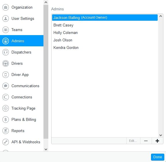 Admins no longer need to share their Onfleet passwords anymore. Admins have full access to your organization’s settings, tasks, teams, and drivers, and you can add as many as you need. Your original Admin becomes the Account Owner, with sole access to Billing settings. Learn more >