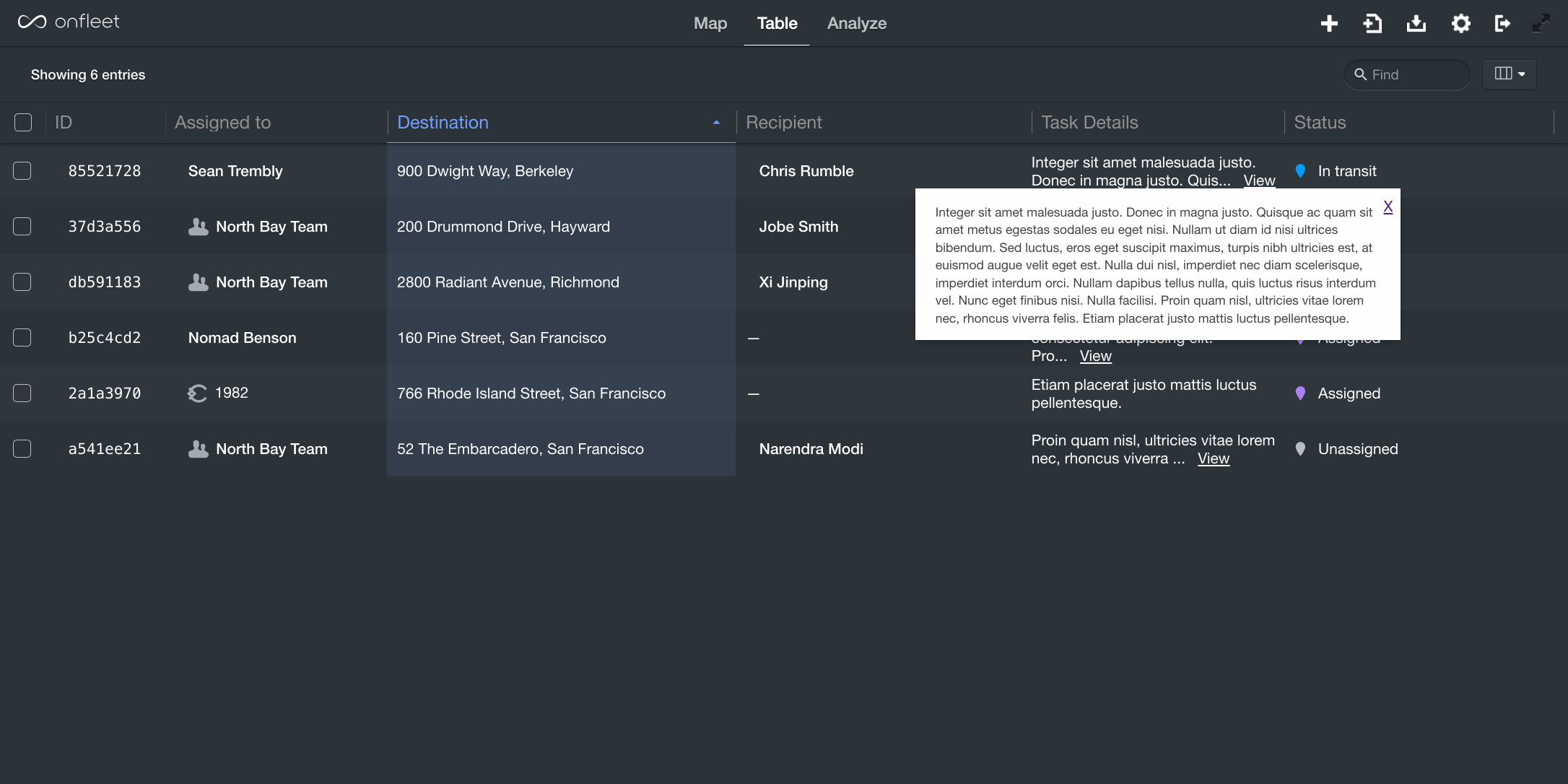 - Look for the new Task Details column in the Table view of your dashboard. The Task Details column allows you to sort and search through any long-form data entered into this field.