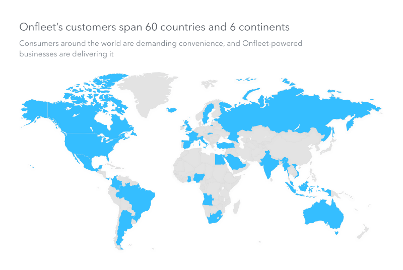 Today, Onfleet is proud to call over 500 innovative businesses, in over 60 countries around the world, our customers. We have powered tens of millions of deliveries, tracking drivers around the world more than 2,000 times over, and we’re only just getting started.