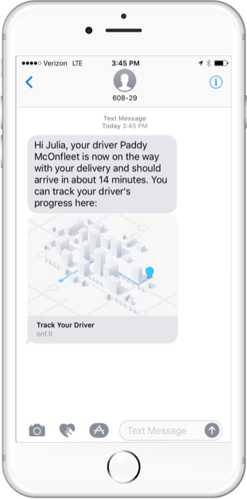 The basis of this simple tipping “integration” is the customer messaging feature within Onfleet. This feature allows a user to customize the messages that customers receive at various delivery milestones. For example, when the driver starts a delivery task, the end-customer will receive a text, facilitated through Onfleet, letting them know the driver is on the way with a live tracking link.