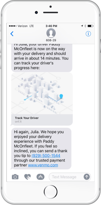 While Onfleet doesn’t currently support tipping through our platform natively, we recently saw a very innovative approach by one of our clients that gives their customers a way to tip their delivery drivers through Venmo. The logistics manager of this company reported a significant increase in tips to their drivers following successful delivery experiences.